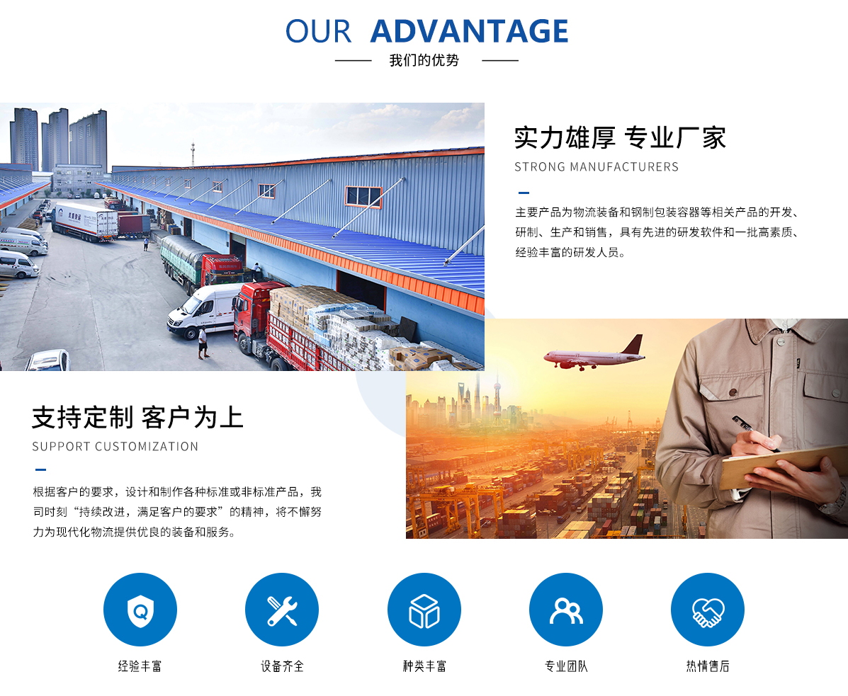 安徽菲雷克斯物流裝備制造有限公司地處安徽省蚌埠市懷遠經濟開發區。距蚌埠港25公里,靠合徐、蚌寧、界阜蚌三條高速公路出口處。 公司于2015年12月成立安徽公司,2016年5月開始投產主要產品為物流裝備和鋼制包裝容器等相關產品的開發、研制、生產和銷售,具有先進的研發軟件和一批高素質、經驗豐富的研發人員...